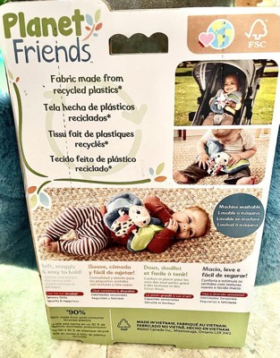[This review was collected as part of a promotion.] Absolutely love the textures on the ears! This little elephant provides comfort and support when little ones are getting settled down. My little one takes her fingers along the edges of the ear as she drinks her bottle and it completely calms her. Love that the are made from recycled materials.