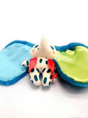 [This review was collected as part of a promotion.] My niece, who just turned 1, has really enjoyed playing with the elephant. She carries it around everywhere she goes. She will play peek a boo with others and by herself by holding the elephant into her face and covering her eyes with its ears. Then she laughs and laughs. The elephant is super soft, has just enough crinkle noise that comes from its ears and it holds up perfectly in the wash.