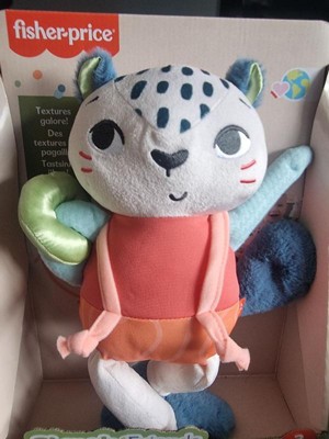 [This review was collected as part of a promotion.] This snow leopard by fisher price is perfect for little hands. I would say it is best for 3 months plus. It is made from 95% recycled plastic. The leopard helps develop motor skills, encourages visual development and sensory stimulation. This is a great Leopard for babies to play with and cuddle.