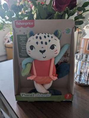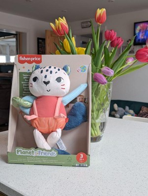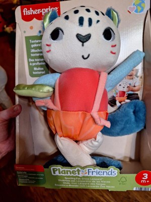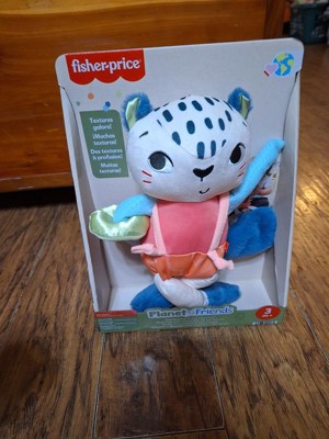 Fisher-Price Baby Toy Planet Friends Spotting Fun Snow Leopard Plush with Sensory Activities for Newborns Ages 3+ Months