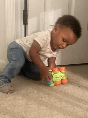 [This review was collected as part of a promotion.] Our 1yr old absolutely loves this Roller vehicle! He rolls it all over the house pretending to “Fix the he Streets”. Super sturdy, loves to push the button to make it squeak. Drives it through obstacle course if various toys on the floor. At times drives through or over the other toys.