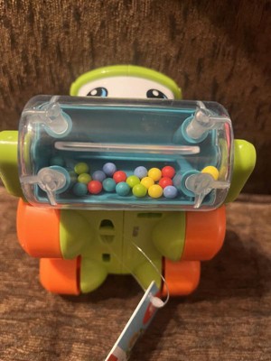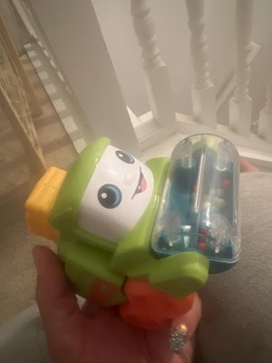 [This review was collected as part of a promotion.] Fun little toy that doesn’t require any batteries to play with. The colors are nice and bright and love that it makes rattling and squeaking noises. Also like that it actually rolls and can be pushed around.