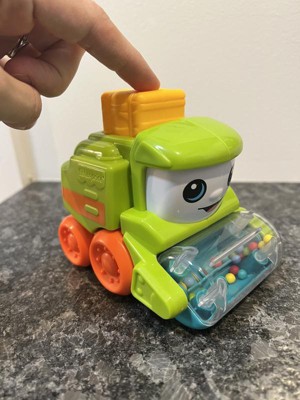 [This review was collected as part of a promotion.] Such a cute little truck! Both of my toddlers love trucks and we have a lot but I love this one because it doesn’t make a lot of noise or sing crazy loud songs. The rattling is just enough to entertain my younger one and he loves watching the beads inside roll around.