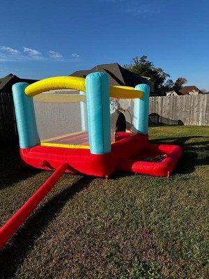 [This review was collected as part of a promotion.] This is so great for toddlers or small children. Great quality. Comes with blower and stakes to keep it sturdy. My kids absolutely love it. They get in it all the time. Also has a ball pit on the side of it.