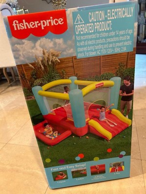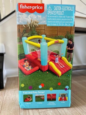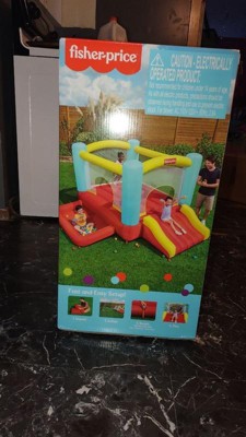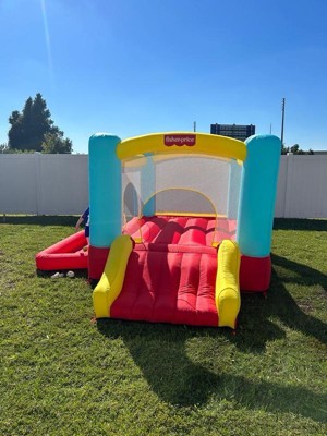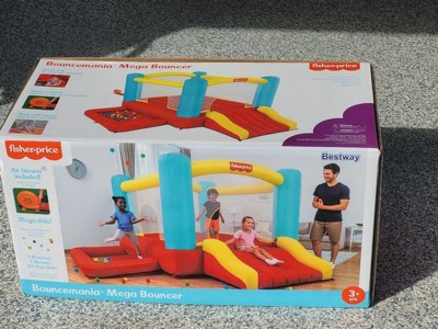 Fisher-Price Bouncemania Inflatable Mega Bouncer with 50 Piece Play Balls, 11 Bounce Stakes, Storage Bag, Blower, and Repair Kit, Multicolor