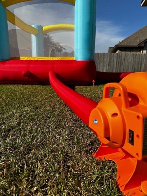 [This review was collected as part of a promotion.] My kids have a blast when they are using this bouncer. The air fills up quickly. It is easy to store too. It comes with a bag. They really loved the slide.