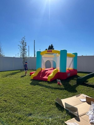 [This review was collected as part of a promotion.] My kids LOVE this jumphouse. They would spend all day on it if I let them. It is perfect for their ages (5 and 7) and they can both be on it and not bump into each other. They love the slide and constantly go down and run back in to go again. It was a super fast set up and really easy to follow the instructions. Everything is straight forward and once you are done playing, so easy to fold up and put in the carry bag. It folds up pretty small for how big this bounce house is and doesn’t take up much space to store. I would 100% recommend this for kids to play on to get all their energy out.