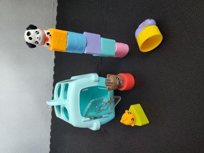 Such a great shape sorter! We have this and the traditional one and I much prefer this! I love the animal shapes for when baby is younger, they're easier to hold! Another modification before baby is ready to do shapes, you can open the door to work on put in/take out/open/close. Good color assortment!