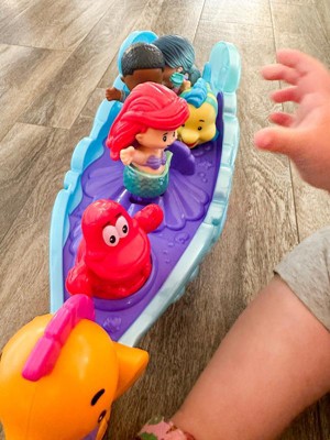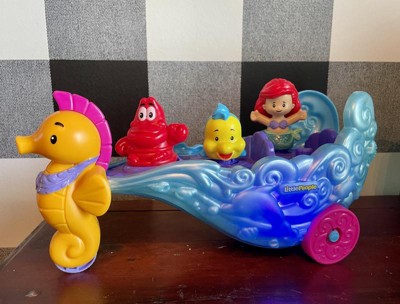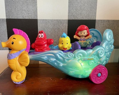 [This review was collected as part of a promotion.] The Fisher-Price Little People Ariel Sea Carriage is a delightful toy for young children who love playing with princesses and sea creatures. The toy is well-designed and durable, and the Ariel and Flounder figures are just the right size for small hands. The music and sound effects add an extra layer of fun to the play experience, and the "floating" dolphin is a nice touch. The sea carriage's wheels make it easy to move around, and its clamshell design is cute and appealing. Overall, this is a great toy for young children who enjoy imaginative play and are fans of the Little Mermaid franchise.