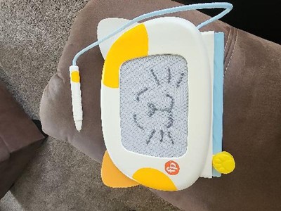 This is the cutest little drawing board! It’s a good size for small hands learning to write and focus on the space for a word. The cat head frame makes it even more fun to draw faces! 😄😺 It’s really well-made, too, which I appreciate because many toys nowadays are not. This is good, ol’ Fisher-Price. And $9.99 is a great price because I have seen similar but crummy magnetic drawing boards priced higher. I am in love with the design! The cat ears are soft fabric with two-sided texture, which is a cute touch. The eraser knob is the tag on the collar, and the pen looks like a tail! Even the packaging was well-designed and sturdy. It would make a nice gift for a child, or even for a grown-up cat lover. I got this for my preschooler, but I love to doodle on it myself!! 😻