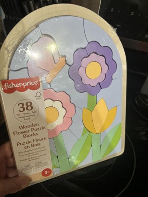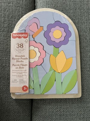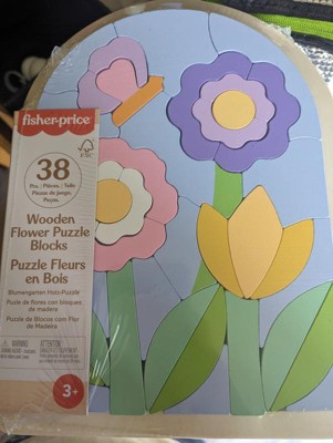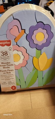 Fisher-Price Wooden Flower Puzzle Blocks for Preschool Kids 38pc Wooden