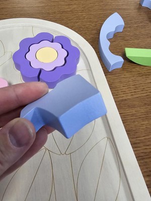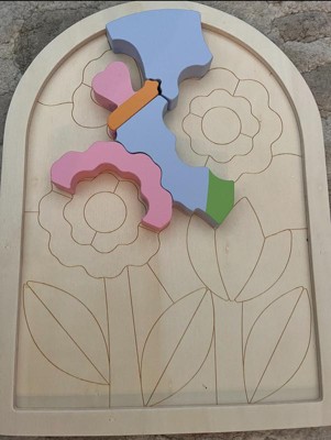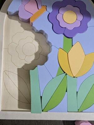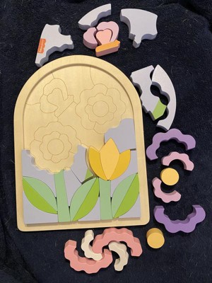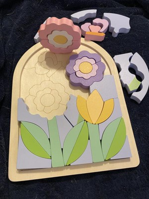 - Wooden jigsaw puzzle for kids in fun floral design with stackable shape blocks
