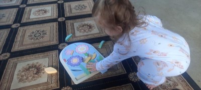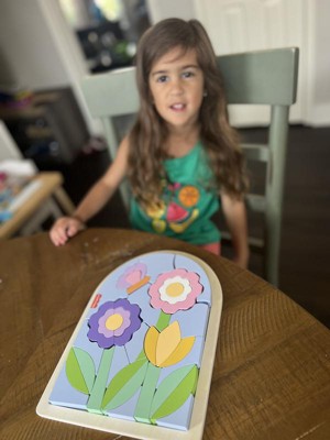 [This review was collected as part of a promotion.] Love this puzzle, gave it to 2 year old girl. Colors are bright and pretty and she loved the flowers!! This puzzle is obviously “above” in age for 2 so the 3 and up is perfect however with assistance she really enjoyed putting it together and I love how it’s not a “traditional puzzle “ and makes the child think