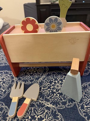 [This review was collected as part of a promotion.] This tiny wooden gaeden has probably kept my child the most entertained of any pretend play toy I have ever gave her. She has spent hours with these well crafted tools and flowers making her garden. The quality and the painting is impeccable and the handy caddy is great for cleanup and portability. 10 out of 10