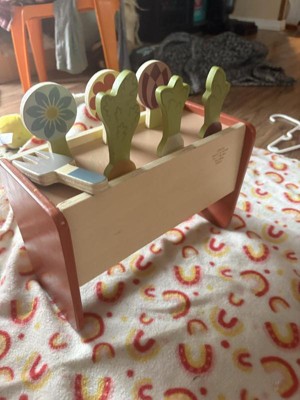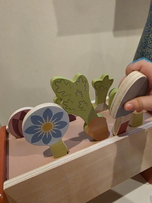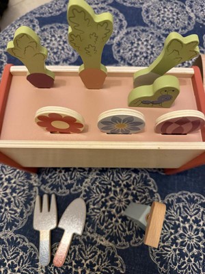[This review was collected as part of a promotion.] My toddlers played with it in the living room it’s a garden caddy they loved it cause it made them feel like they was being like mommy and growing a garden. It has 3 beautiful wooden flowers and three veggies to grow the caddy it self is also made of wood it’s very sturdy and would definitely recommend if you have little ones to get it helps them play pretend about growing flowers and veggies.