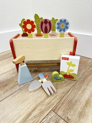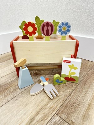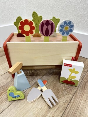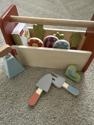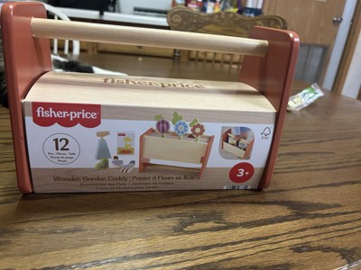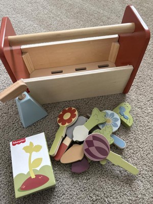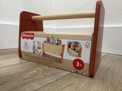 Fisher-Price Tiny Garden Wooden Garden Caddy Pretend Play Set with Tools for Kids 12pc Wooden