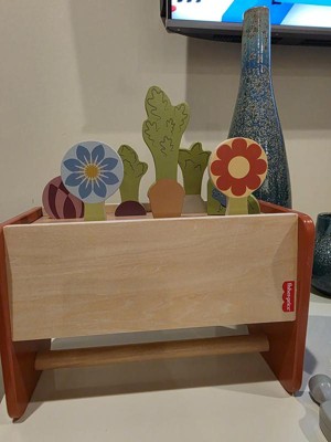 [This review was collected as part of a promotion.] My daughter really enjoys this cute garden set from Fisher Price. It has durable wooden play pieces and slots on the bottom of the carrier so when you flip it over you can plant the flowers, or use it as a carrying case! I like the look of the toy because it's not too brightly colored and it's aesthetically pleasing. My daughter likes to pretend to water the flowers with the wooden sprayer. Overall I'd recommend this for any young kid in your life!