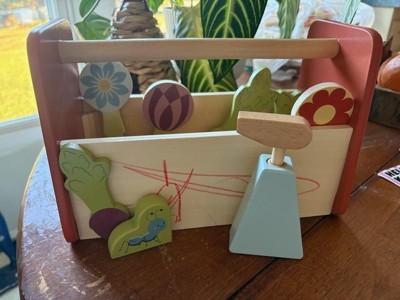 [This review was collected as part of a promotion.] I love the sturdy wood construction of most of the components to this play set. The color palette is really refreshing and would even make for cute nursery decor before a child is old enough to play. My one and only complaint is that the seed box was made of cardboard. It lasted all of one week with my toddler before it was crushed and ripped beyond repair. A solid wood box would have been much better, or even a think wood rectangle. Otherwise, the set is very cute and allows for imaginative play. My son also used the box to carry other toys, so it can be very open ended.