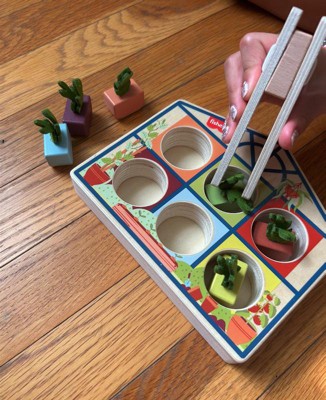 [This review was collected as part of a promotion.] My granddaughter loves this toy; we played for a good 45 minutes with it. She loves how you use the tongs to remove the plants. This teaches dexterity and color recognition. Very well made wooden toy. Enjoyed this one alot.