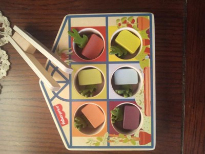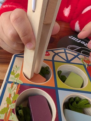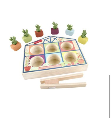 Preschoolers can practice color-matching through fun gardening play with this Wooden Sorting Greenhouse activity toy from Fisher-Price. Inspired by a classic Montessori activity, kids can use the tweezers to grasp and sort each colorful vegetable into its corresponding slot to “plant” it in the greenhouse. This 8-piece set is made with wood from Forest Stewardship Council-certified sources (FSC-N004566) and decorated with non-toxic, water-based paint. Colors and decorations may vary.