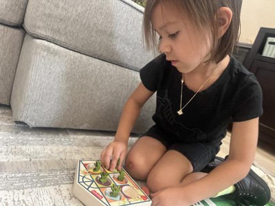 [This review was collected as part of a promotion.] We adore this Tiny Garden Wooden Sorting Greenhouse Activity Toy. A must have for any preschool age child who needs help practicing their grips and coordination. We are suckers for Montessori style learning and this is exactly that. My daughter very happily picks up the plays and releases them in their places with some effort, which means she needs more practice with her pincer grip which will eventually help her with skills like grasping a pencil to write etc. I love the concept and execution. It is very well made and sturdy, will last forever honestly. Very good activity toy for any preschooler and a great way to learning about planting from young.