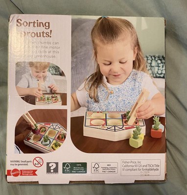 Fisher-Price Tiny Garden Wooden Sorting Greenhouse Activity Toy for Preschool Kids
