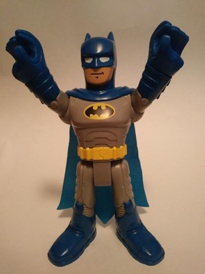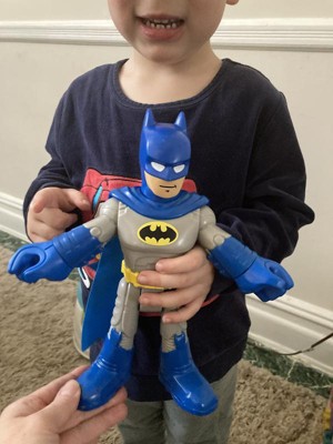 [This review was collected as part of a promotion.] My son enjoyed playing with the Imaginext DC Super Friends Batman and takes it everywhere. He liked that this batman had the ability to stand and sit. The figure has a attached blue fabric cape that made flying fun along with movable arms and wrists that enabled my son to pose him any way he wanted. Overall I would recommend the Imaginext XL Batman for its quality, functionality, and durability.