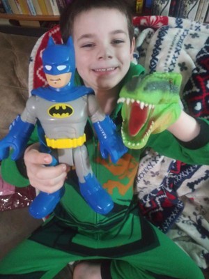 [This review was collected as part of a promotion.] We got the blue Batman as a second choice, but no regrets. My son and nephew love to olay woth him, because its big size in comparisson to other supeheroes we have at thome. So Batman is pretty much the favorite one to deal with the bad guys.Easy to grasp with small hands, and easy to keep around while playing, plus super easy to clean.