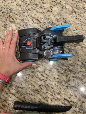 [This review was collected as part of a promotion.] He loves the light and how it shines through Batman. He likes that the wheel trigger makes a clapping noise and his favorite feature is the hidden disc spot underneath. He uses this with his big remote batmobile and has disc wars.