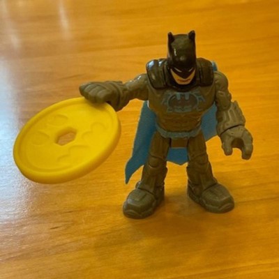 [This review was collected as part of a promotion.] My son loves Batman and he really enjoys this toy. It's great because it comes with a Batman figure, and the chest lights up when he's sitting in the Batmobile and the button is pressed. It also comes with 2 discs to shoot, and there's a spot to store a disc under the Batmobile to save it from getting lost, which is great. My son can play with this for hours!