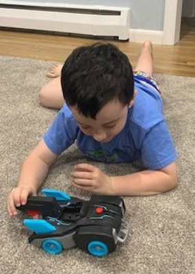[This review was collected as part of a promotion.] I received this toy last week and my son has literally taken it everywhere! He loves the cool Batman action figure, real working car, and lights. He makes his own sounds and talks about how fast it can roll. The car and figure are both very durable for long wear play.