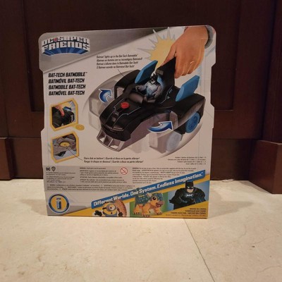 [This review was collected as part of a promotion.] My son was thrilled when his IMAGINEXT DC SUPER FRIENDS BAT-TECH MOBILE arrived. He's been having a blast driving and "flying" the car around the house. When he presses the lever at the back of the car wings pop out and he takes Batman the BAT-TECH MOBILE for a ride in the sky. There is also a red button on the front which launches discs from the front of the car. He is having so much fun knocking the bad guys out of the way. I love that the toy came fully assembled with batteries so all we had to do was open the package and let the fun begin.