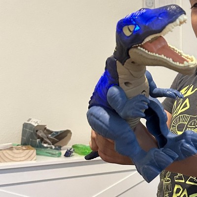 [This review was collected as part of a promotion.] Bright blue color of the Baryonyx. Geared more towards a younger child verse a collector. Take it from the box and go. Battery has just died, and not because of lack of use. We had it going off in the middle of the night as the battery died. Biggest thing was it was and still is played with frequently. It is in one piece. I would recommend for kids under 8.