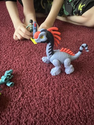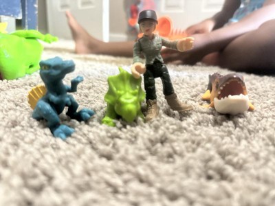 [This review was collected as part of a promotion.] This fun Imaginext set includes five dinosaurs in different sizes, colors, and textures. Impressive realistic eyes bring them to life! It also comes with a person figure equipped with a cool projectile launcher and several accessories. My son especially loves the launcher. It’s easy for him to load and use on his own. A super cute and creative set that encourages imaginative play!