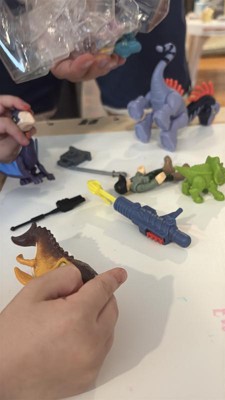 [This review was collected as part of a promotion.] This set has so many dinosaurs! It’s great! Our only concern is that the dart gun is much bigger than the character who would use it. The dinos are really cute and fun. We like the variety of types of dinosaurs.