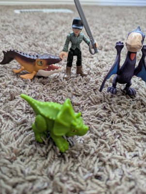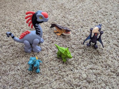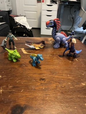 - The figures include one 3-inch human and 5 different dinosaurs -- one dino towers over the others at 5 inches tall and 2 feature real-feel elements that are fun to touch!
