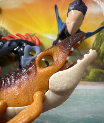 [This review was collected as part of a promotion.] This was a fun toy for my son who loves dinosaurs . He particularly liked the variety of dinosaurs that came with this pack. It allowed for him to capture the dinosaurs in different ways since some fly , some walk on land , and some swim . He also really enjoyed that there were two ways to stop the dinosaurs , a launcher and a sword . He particularly liked the launcher and had fun knocking the dinosaurs over. The launcher shoots far and is strong enough to actually knock the dinosaur over. The quality of the plastic is high and durable so parents don’t need to worry about anything breaking if play gets a little rough.