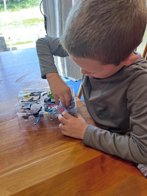 [This review was collected as part of a promotion.] This quickly became a favorite toy that is played with daily. It is nice that it has creatures from air, land, and sea. Also a human with accessories. The colorful dinosaurs attract attention and draw the kids in for play.