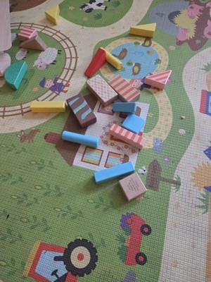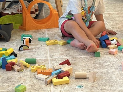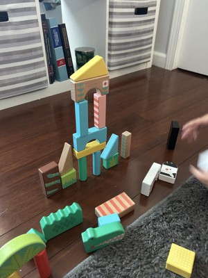 [This review was collected as part of a promotion.] We were so excited to use these but I’m sad to admit they were not a favorite. The set is really compact which means the blocks have some very narrow sides, my 4 year old struggled to stack them and get the pieces to balance similar to the pictures on the box. The pieces that have detail painting have a glossy top coat that makes them really slippery, another reason my son got frustrated when playing with them. When we first opened the box, I noticed that some of the pieces already had paint chipping which was disappointing too.