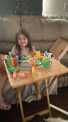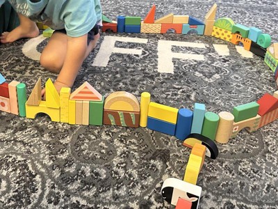 [This review was collected as part of a promotion.] This set of blocks is a step ahead! Well made of real wood. All have a cute paint job to help the imagination bloom in each kiddo. Heck! This Nanny even plays with these blocks. Just a lot of fun overall. Will last for generations of fun and building.