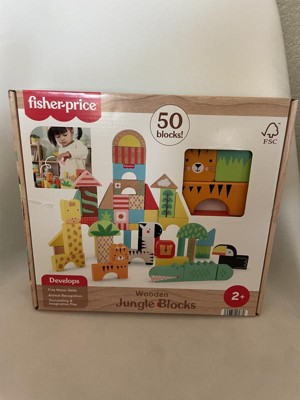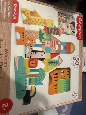 Fisher-Price Wooden Jungle Blocks Animal-Themed Building Set for Toddlers 50pc Wooden