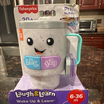 - Interactive baby toy styled like a to-go coffee cup with fun lights, music and learning for little pretenders