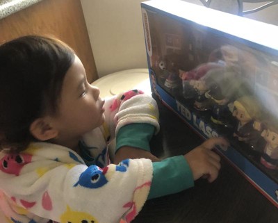 [This review was collected as part of a promotion.] When my kid opened the product she was very excited. It was extremely difficult to take the toys out of the plastic. The backdrop was a nice addition as it helped her play talk with the figures. We opened the box at home and she played with the figures for approximately 5 minutes. She grew tired of them quite quickly. I feel it needs some other type of accessory with the figures to keep the child engaged.