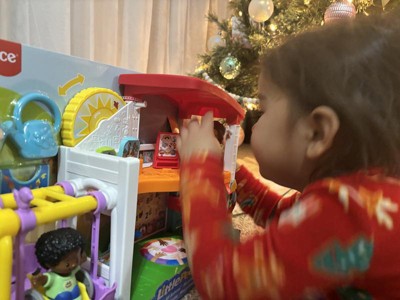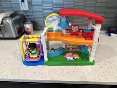 [This review was collected as part of a promotion.] You can’t go wrong with any of Mattel Little people play sets and this one is no different. Very sturdy and well built. It has lots of entertaining aspects like the elevator and swing. Also the round carpet is actually soft and fuzzy to the touchy. And we also loved the included wheelchair child that can even play on the swing. Very thoughtful fun toy.