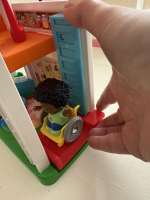 [This review was collected as part of a promotion.] My two year old daughter absolutely loves the Fisher Price Little People Play for All School School Toddler Playset. She literally screamed with excitement when we received this yesterday. The colors are so vibrant and beautiful so of course it will catch our littles ones eyes. She loves pushing the little figures back and forth on the swing set. She also loves the fact that the elevator goes up and down! I think the little figures included were absolutely beautiful. The little boy in the wheelchair made my daughter very curious so that became a learning experience for her. Overall, my daughter and I are overjoyed with this toy and would recommend it to everyone.