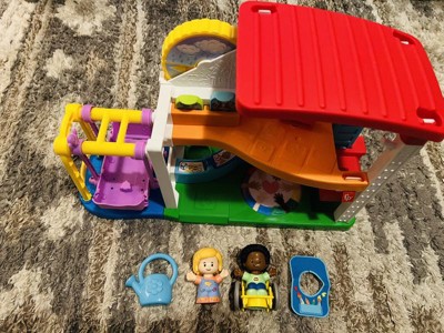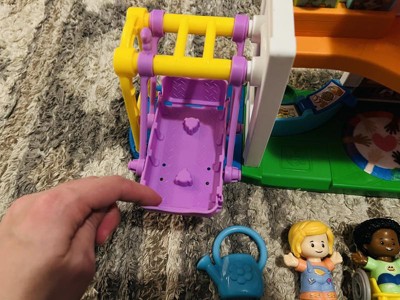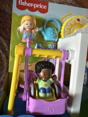 [This review was collected as part of a promotion.] The Fisher-Price Little People Play Set is easy to set up and play with. It is easy to clean. I love the sturdiness of this toy. My daughter plays with it for hours. It comes with swing two little people a white board and a watering bucket.