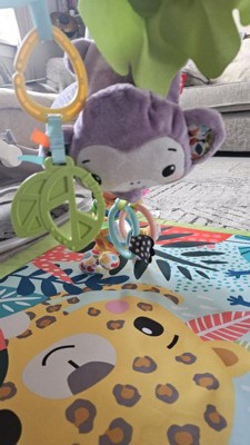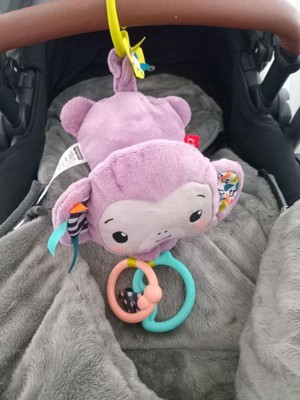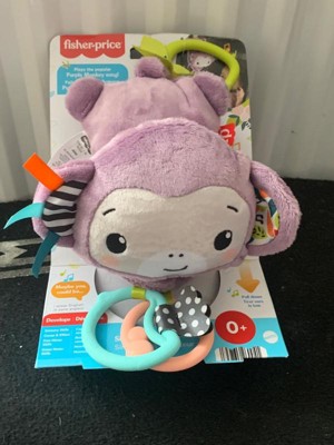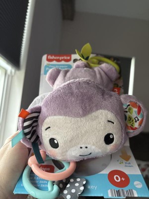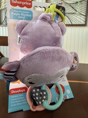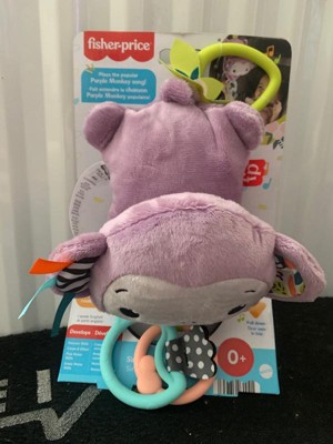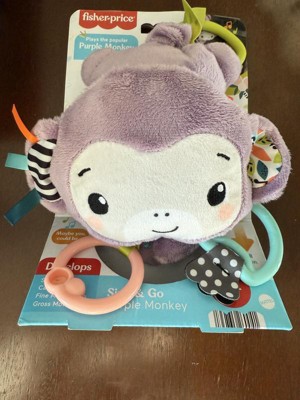 - Take-along baby stroller toy with fun sensory details that plays the Purple Monkey Song from the Fisher-Price Deluxe Kick & Play Piano Gym (Gym sold separately & subject to availability.)