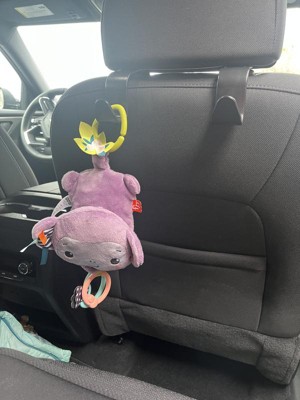 [This review was collected as part of a promotion.] This is a cute toy for babies and even toddlers. The colors and features give baby lots to keep her busy. I particularly like the feature of pulling down on the loops to make music play. It plays several catchy tunes. Good for distracting baby on car rides. Easily hooks on to car seat strap or can hang on a seat hook.