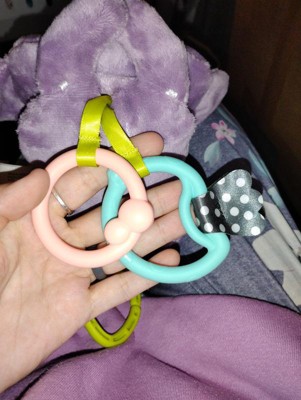 - Easily attach to a stroller canopy, baby gym, or diaper bag with the handy link