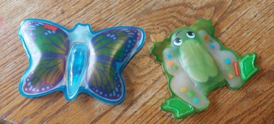 [This review was collected as part of a promotion.] The Sensory Bright Butterfly and Frog are for 3+ ages. The butterfly smells like Blueberries and the Frog smells of lemon. They are squishy in the hands of small children and were great for sensory skills. They were "cool" to the touch in little hands and were used for color, smell and shape recognition.